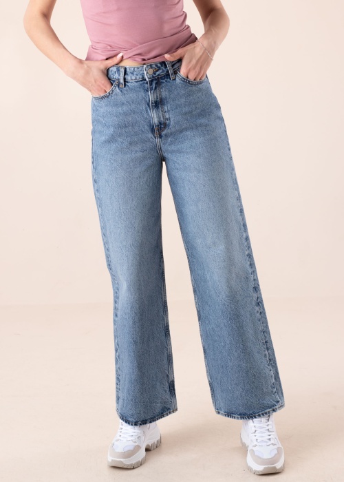 Vienmēr modernas JJXX džinsa bikses ir drosmīgs stila piemērs. Modernas un plati staru gali džinsa bikses ir neelastīga denima un ar platiem staru galiem. Vidukļa daļa aizdarāma ar pogu un rāvējslēdzēju , priekšpusē un aizmugurē atvērtas kabatas , kā arī aizmugurē ir ādas marķējums. Foto: augums 178 cm valkā 27/32 izmēru.