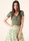Jauneklīgs JJXX tops der dažāda rakstura dienām. Pievilcīgs tops ir ar V-veida kakla izgriezumu un ar īsāku piegriezumu valkāšanas komfortu nodrošina materiāla elastīgums. Akcentu pievieno interesants dizains priekšpusē. Foto: augums 176 cm valkā S izmēru.