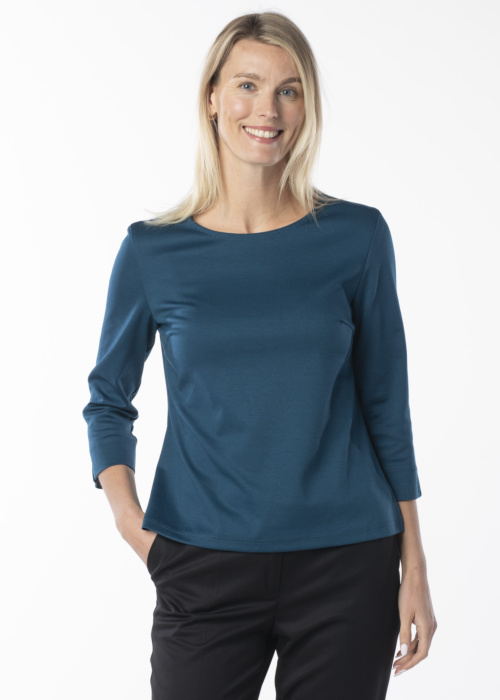 Kairi Vilderson sieviešu blūze ir klasiska un eleganta, ar trīs ceturtdaļu garuma piedurknēm un apaļu kakla izgriezumu, kas piešķir tai izsmalcinātu izskatu. Blūze ir izgatavota no mīksta auduma, un tās interesantais dizains piedurknēs, kā arī šķēlumi piedurkņu galos, piešķir tai unikālu šarmu. Modele ir 177 cm gara un valkā 38. izmēru.