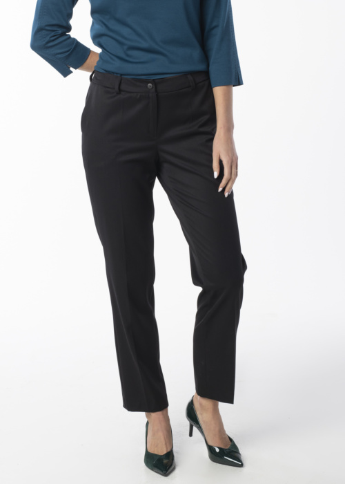 Kairi Vilderson sieviešu klasiskās bikses ir veidotas ar elegantu un izsmalcinātu dizainu, kas izceļas ar taisnu siluetu un elastīgu materiālu. Šīs brīvi krītošās bikses ir aprīkotas ar kabatām sānos, un josta priekšpusē ir aizdarāma ar pogu un rāvējslēdzēju. Tās papildina buktes priekšpusē un aizmugurē. Modele ir 177 cm gara un valkā 38. izmēru.