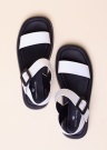 Keddo zīmola sandales ar mākslīgās ādas virspusi ir ideālas valkāšanai ikdienā. Pāri purngalam novietota vidēja platuma siksna, un ap valkātāja kāju tās nostiprinās ar platu siksnu, kas nodrošina trīspakāpju spriegojumu. Iekšpusi klāj ērta mākslīgā āda, un iekšzole ir ar maigu mīkstinājumu. Ārzole no gumijas materiāla, kas veicina saķeri ar dažādām virsmām. 39.izmēra sandales svars ir 352 g. Krāsa: melna/balta. Iesakām ņemt par izmēru mazāku!