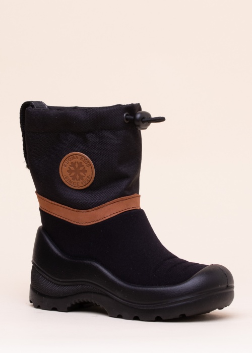 Kuoma ziemas zābaki Lumiloras bērniem, kas nodrošina lielisku komfortu, ir ideāli līdzgaitnieki auksta laika apstākļos. Tekstila virspusē Nuva ® apdare, kas padara tos ūdeni un netīrumus atgrūdošus. Ārzole no sintētiska materiāla nodrošina aizsardzību arī purngalā un papēža daļā, nodrošinot papildu aizsardzību pret mitrumu. Zābaka stulma daļas apkārtmēru iespējams regulēt ar savilcējgumiju un stoperu. Zābaka ārpusi rotā mākslīgās ādas detaļas. Iekšzole ir izņemama un maināma. Ārzole, kas absorbē triecienus, ir ar dziļāku rakstu un izgatavota no putuplasta, kas nodrošina lielisku vieglumu. 34 . izmēra zābaku svars ir 341 g. Krāsa: melna.