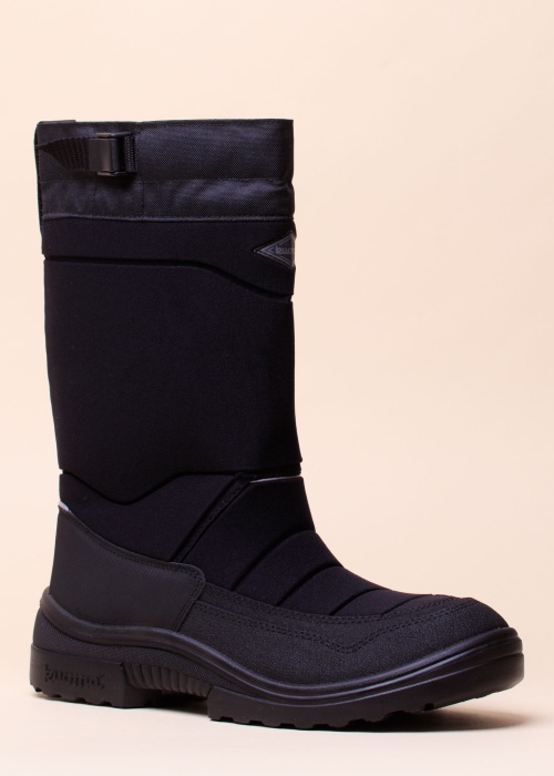 Somu izcelsmes Kuoma zīmola radītie īpaši siltie un vieglie ziemas zābaki saglabās Jūsu kājas siltas. Zābaki ir piemēroti valkāšanai ikdienā ziemas laikā. To virsmas darināšanā ir izmantota āda un tekstils, kas vienlaikus ir arī ūdeni un netīrumus atgrūdoši, un tādēļ padara zābakus izturīgākus. Oderējums un iekšzole ir darināta no īstas aitas vilnas, un zole no sintētikas. Iekšzole ir izņemama. Ārzoles rievojums nodrošina labu saķeri arī dubļainā laikā. Ar auklu aizdarēm stulma augšējo daļu var regulēt un padarīt ērtāku atbilstoši kājai. Pavilkšanas cilpa ērtākai uzaušanai. Atstarojoša detaļa priekšējā un papēža daļā. Kuoma logo priekšā un uz zoles. Zābaka augstums bez zoles ir apm. 29 cm. Krāsa: Melna