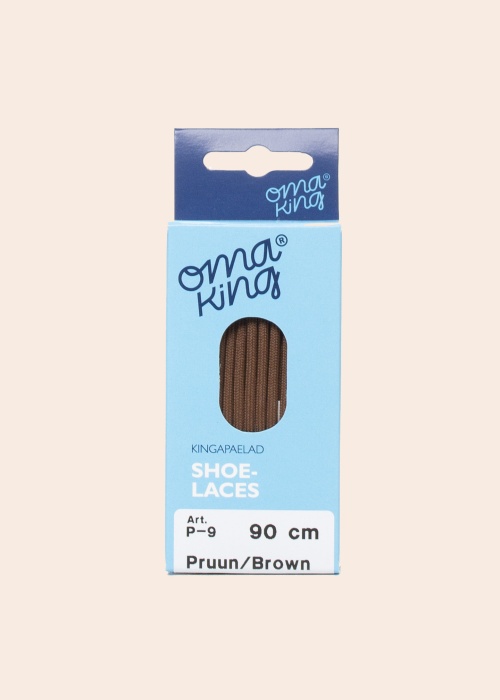 Apaļās, klasiskās krāsas OmaKing kurpju šņores ir veidotas smalkākā stilā, ir pieticīgākas un tādējādi īpaši piemērotas kurpēm un citiem solīdiem apaviem. Šņores ir izgatavotas no poliestera. Komplektā ietilpst divas šņores, kuru garums ir 90 cm. Krāsa: brūna.