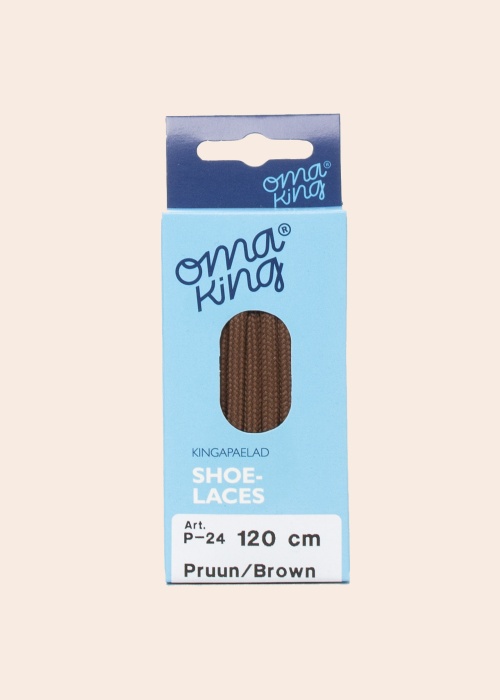 Biezās un apaļās OmaKing kurpju šņores būs lieliski piemērotas arī pārgājienu un sporta apaviem. Šņores ir spēcīgas un izturīgas. Komplektā ietilpst divas šņores, kuru garums ir 120 cm. Krāsa: brūna.