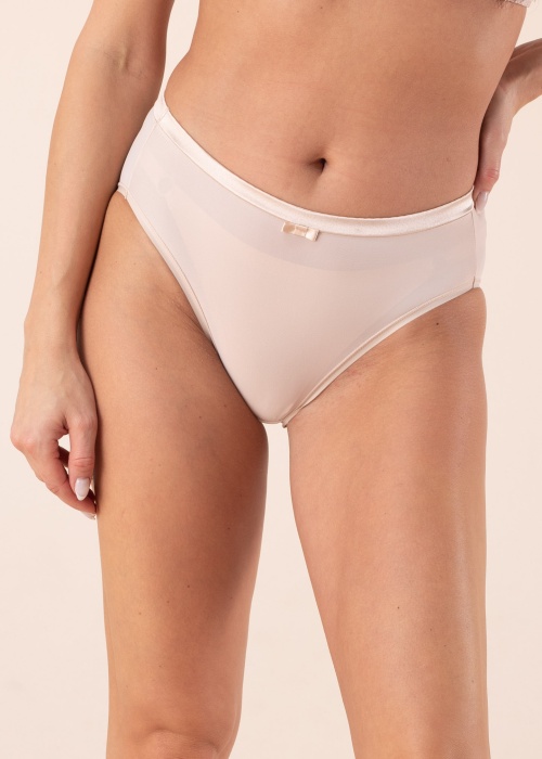 Ikdienas valkāšanai radītās Lauma apakšbikses nodrošina skaistu izskatu un ērtu pašsajūtu! Klasiska piegriezuma apakšbiksēm ir vidējaa augstuma jostas vieta ar skaistu bantīti vidū. Apakšbikses izgatavotas no plāna elastīga auduma, kas pieguļ ādai un ir ērts un mīksts valkājot. Modeles augums 176 cm, valkā 38. izmēru. Materiāls: poliamīds 78%, elastāns 13%, kokvilna 9%. Krāsa: bēša.