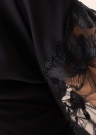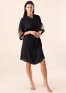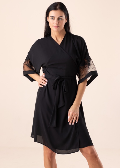 Sievišķīgs Lauma peldmētelis der bezrūpīgai atpūtai. Uzmanību piesaistošs un ar kimono piedurknēm peldmētelis ir gaisīgs un laba krituma. Uz piedurknēm ir mežģīne un viduklī ir sasienama josta. Foto: augums 176 cm valkā 36 izmēru.