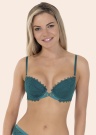 Lauma sieviešu krūšturis ir elegants un izsmalcināts. Priekšpusē tas ir rotāts ar skaistu mežģīni, kas piešķir tam īpašu šarmu, savukārt viduklī ir dekoratīva detaļa, kas pievērš uzmanību un izceļ sievietes figūru. Krūšturim ir polsterētas krūšu bļodiņas un stīpiņas apakšā, kas nodrošina papildu atbalstu un komfortu visas dienas garumā.