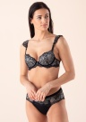 Brīnišķīgs Lauma krūšturis ar valdonīgu dizainu nekavējoties uzvarēs tavu sirdi! Nostiprināto krūšu daļu klāj brīnišķīgs audums, kura iekšpusē izvietoti izņemami spilveni, ar kuriem izveidot push up efektu. Samtaino balstu loku vidū novietots dekoratīvs akmentiņš. Regulējamām plecu lencēm eleganci plecu zonā piešķir papildu audums. Elastīgā mežģīņu muguras daļa aizdarāma ar divrindu āķi. Modele ir 176 cm gara, valkā 75B izmēru.
