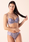 Ārkārtīgi skaista un eleganta veļa ikvienu sievieti padara laimīgu! Lauma krūštura polsterētās krūšu daļas iekšpusē izvietoti papildus noņemami balsta spilveni. Ar brīnišķīgu audumu rotātā krūšu daļa ir aprīkota ar atbalstošām loksnēm, kuru vidū atrodas nelieli akmentiņi un lenta. Regulējamās plecu lentes satiekas muguras daļā, kas aizdarāma ar āķīša aizdari. Modele ir 176 cm gara, valkā 75B izmēru.