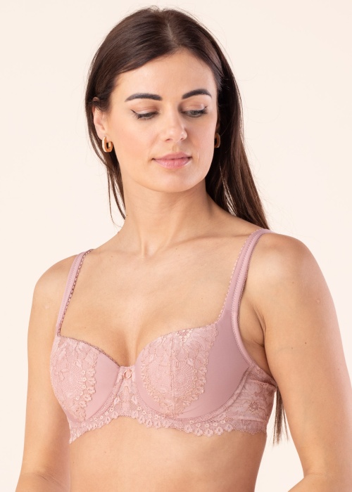 Skaisti un mežģīņu krūšturis . Precei ir atbalsta stīpas un polsterētas krūšu bļodiņas , kā arī plecu siksnu garums ir regulējams. Foto: augums 176 cm valkā 75B izmēru.