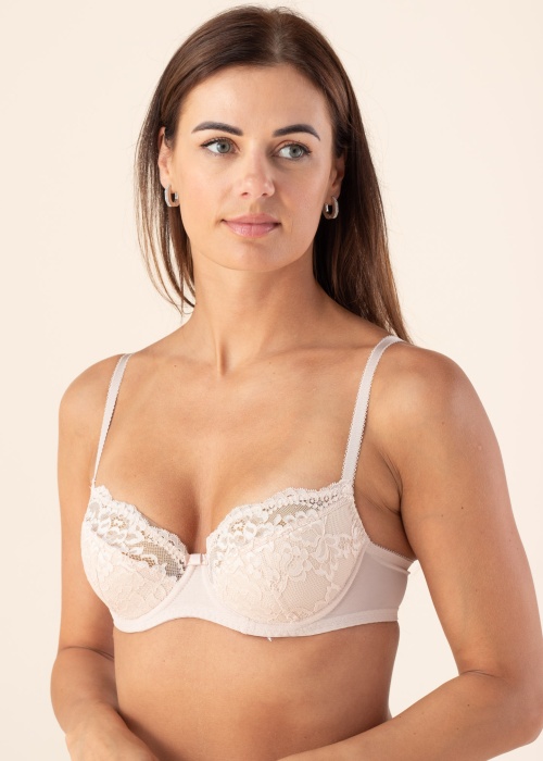 Vienkāršs un ērts Lauma krūšturis der valkāšanai ikdienā. Uz priekšpuses ir mežģīne , komfortu piešķir ar stīpiņām apakšā un aizmugurē ir āķi. Plecu siksnu garums ir regulējams. Foto: augums 176 cm valkā 75B izmēru.