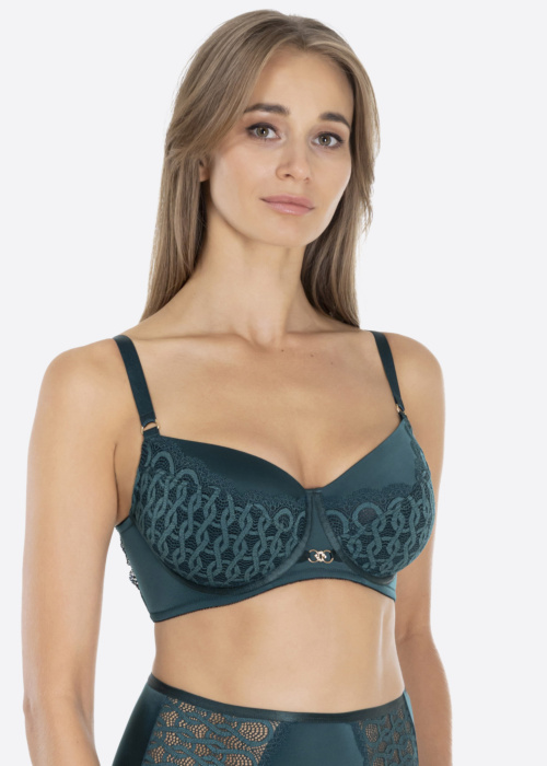 Lauma sieviešu krūšturis Leticia ir elegants un komfortabls apģērbs, kas nodrošina regulējamas plecu lences un stīpiņas, lai sniegtu optimālu atbalstu un ērtumu. Priekšpusē esošā mežģīne piešķir krūšturim izsmalcinātu un sievišķīgu izskatu, padarot to par lielisku izvēli gan ikdienai, gan īpašiem gadījumiem.