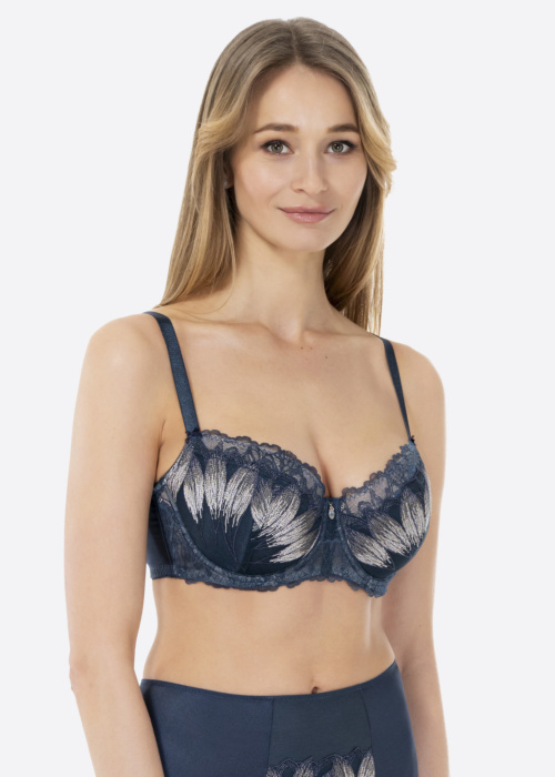 Lauma sieviešu bralete Alberta ir sievišķīga un jauka izvēle ikdienas valkāšanai. Tā izceļas ar izšuvumu priekšpusē, dekoratīvu detaļu viduklī, āķi aizmugurē, polsterētām krūšu bļodiņām priekšpusē un stīpiņām apakšā, nodrošinot gan komfortu, gan eleganci.