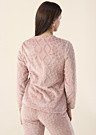 Lauma sieviešu tops ir izgatavots no mīksta materiāla un ir vienkrāsains. Tam ir garas piedurknes un apaļš kakla izgriezums. Tops ir viegls un tam ir reljefs raksts. Modele, kuras augums ir 176 cm, valkā 36. izmēru.