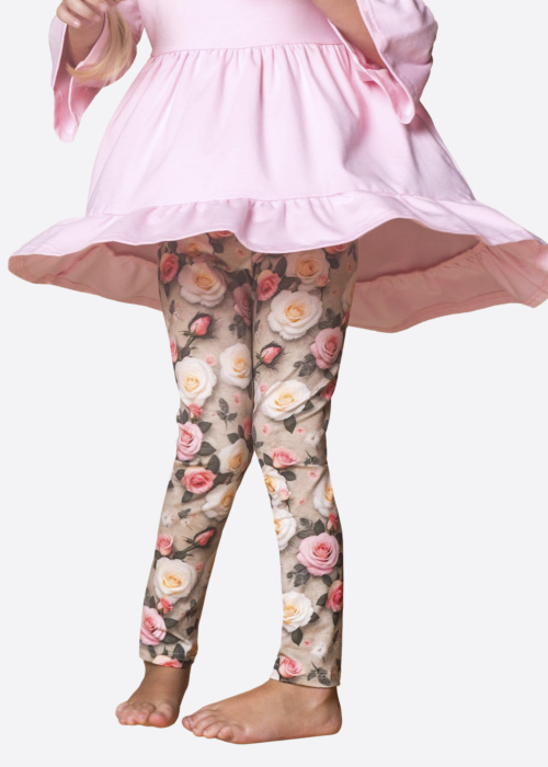 Lenne meiteņu legingi ir ļoti ērti un piemēroti ikdienas valkāšanai. Tie ir aprīkoti ar elastīgu jostu, kas nodrošina komfortu visas dienas garumā. Ziedu raksts piešķir legingiem stilīgu un rotaļīgu izskatu, padarot tos par lielisku izvēli jebkurai meitenei.
