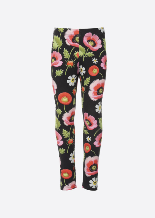 Lenne meiteņu legingi ir ļoti ērti un lieliski piemēroti ikdienas valkāšanai. Tie ir izgatavoti ar elastīgu jostasvietu, kas nodrošina komfortu un pielāgošanos dažādām ķermeņa formām. Legingus rotā skaists ziedu raksts, kas piešķir tiem unikālu un stilīgu izskatu.