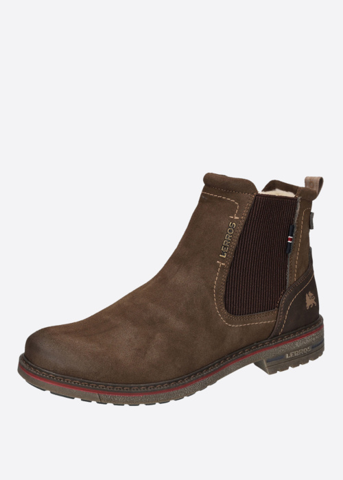 Lerros vīriešu puszābaki ir eleganti un moderni, nodrošinot siltumu un piešķirot izsmalcinātu izskatu. Zābakiem ir elastīgs panelis sānos un rāvējslēdzējs sāna iekšpusē, kas ļauj tos viegli uzvilkt. Papildus tam, zābaku sānos un aizmugurē ir redzams zīmola logo un raksts, kas piešķir tiem unikālu izskatu.
