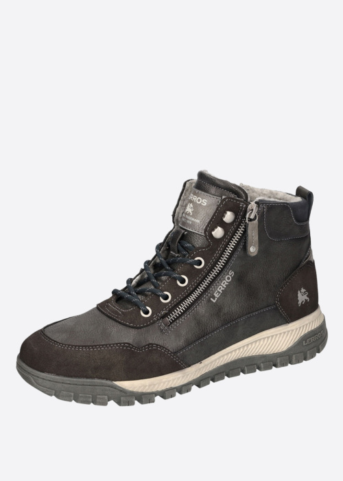 Lerros vīriešu puszābaki ir stilīgs un vīrišķīgs apavu risinājums ikdienas valkāšanai. Tie nodrošina komfortu un siltumu, kas ir īpaši svarīgi aukstākos laikapstākļos. Puszābakiem ir šņores priekšpusē, kas piešķir tiem klasisku izskatu un ļauj pielāgot apavu piegulšanu. Sānos ir praktisks rāvējslēdzējs, kas atvieglo apavu uzvilkšanu un novilkšanu. Papildus tam, dekoratīvs rāvējslēdzējs sānos piešķir apaviem unikālu stilu. Lerros logo sānos apliecina zīmola kvalitāti un uzticamību.