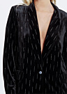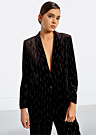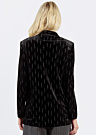 Lili Sidonio sieviešu žakete ir elegants un mirdzošs apģērbs, kas piešķir izsmalcinātību jebkuram tērpam. Tā ir izgatavota no samta un aprīkota ar atliekamu apkakli, kā arī pogu aizdari priekšpusē, kas nodrošina komfortablu valkāšanu. Žaketes priekšpusē ir kabatas ar atloku, un tās virspusi rotā spīdīgi fliteri, kas piešķir īpašu šarmu un izsmalcinātību.