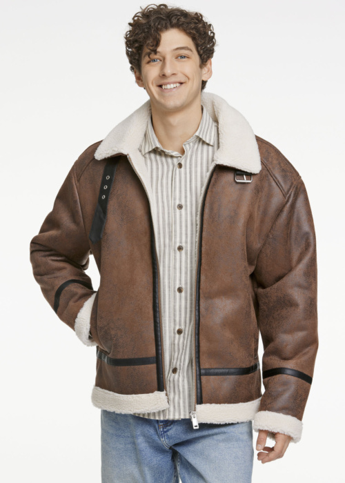 Lindberga vīriešu īsā jaka ir lielisks retro stila piemērs, kas apvieno komfortu un elegantu izskatu. Tā atloka apkakle un priekšpusē esošais rāvējslēdzējs nodrošina praktiskumu, savukārt patīkamais materiāls un siltā kažokādas odere sānos sniedz pārliecības sajūtu. Skava uz apkakles piešķir jakai papildu šarmu, padarot to par lielisku izvēli vēsākām dienām.