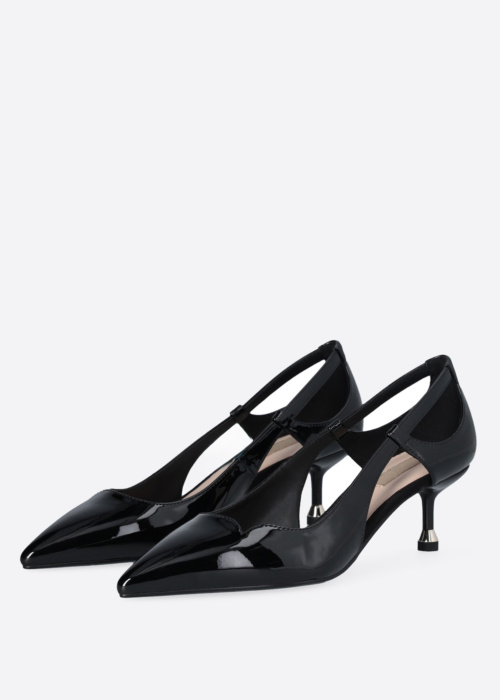 Liu-Jo sieviešu kurpes Deva - 03 ir elegants un sievišķīgs apavu pāris, kas izceļas ar savu smailo purngalu un augsto papēdi. Šīs kurpes ir spīdīgas un piešķir valkātājai izsmalcinātu izskatu, kas piesaista uzmanību. Interesantais dizains uz papēža piešķir papildu šarmu un padara tās par unikālu izvēli jebkuram pasākumam. Papēža daļā ir redzama zīmola etiķete, kas apliecina to augsto kvalitāti un stilu.