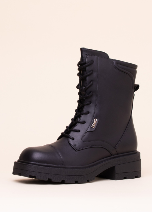 Liu-Jo sieviešu puszābaki Annika 02 ir moderns un stilīgs apavu pāris, kas lieliski piemēroti ikdienas valkāšanai. Šie zābaki izceļas ar savu robusto dizainu, un sānos tiem ir redzama zīmola etiķete, savukārt priekšpusē ir sasienama josta, kas piešķir tiem unikālu izskatu. Lai nodrošinātu praktiskumu un komfortu, zābaki ir aprīkoti ar rāvējslēdzēju sāna iekšpusē, kas ļauj tos viegli uzvilkt un novilkt.