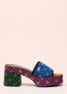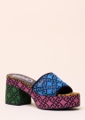 Individuālas un stilīgas Liu-jo zīmola vaļējas kurpes Jasmine 8 ir ideāla izvēle modernai sievietei! Drosmīgas un stilīgas kurpes ir ideālas valkāšanai vasaras sezonā. Virspusi rotā tekstils košās krāsās, ko rotā raksts ar zīmola logotipiem. Pāri pēdai novietots metālisks zīmola logo. Iekšpusi klāj āda, un iekšzole ar mīkstinājumu nodrošina komfortu uz katra soļa. Arzoli rotā rozā audums, papēdi, zaļš audums. Ārzole izgatavota no gumijas materiāla, tādējādi nodrošinot lielisku saķeri ar virsmām. Papēža augstums 9 cm. Izmērs 39 - apavu svars ir 439 g.