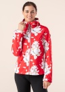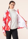 Uzkrītošā un košo krāsu Luhta softshell pavasara-rudens jaka ir lieliski piemērota sievietei, kura vēlas izcelties. Ar A.W.S Active tehnoloģiju īpaša uzmanība ir pievērsta funkcionalitātei un komfortam izstrādes laikā, kas piemērota aktīvākām aktivitātēm, kā arī ikdienas valkāšanai. Ūdensizturīgs un vēja necaurlaidīgs režīms 5000mm / 5000g / m2 / 24h. Jaka ir pārklāta ar sievišķīgu ziedu rakstu, kas ir patīkami atsperīgs un malbe. Rāvējslēdzēja priekšpuse, augsta apkakle un mājīga kapuce pasargā valkātāju no aukstuma. Sānos ir kabatas ar rāvējslēdzēju, kur, atrodoties ārā, ir viegli uzglabāt svarīgus priekšmetus. Kreisās piedurknes augšpusē ir redzams zīmola logotips. Manšetes galus var pielāgot atbilstoši lietotāja plaukstas locītavai, izmantojot mikroshēmas. Regulējams spriegotājs ar pieturām apakšā. Modelis ir 176 cm garš un valkā 36. izmēru. Jakas garums no aizmugures līdz apakšai ir norādīts 63 cm izmērā. Materiāls: 100% poliesters. Krāsa: sarkana / balta / rakstaina.