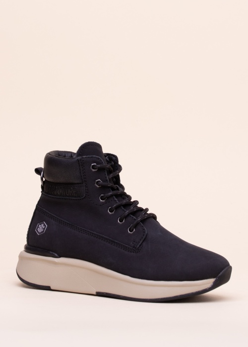 Modernie Lumberjack puszābaki Meryl ir īpaši stilīgi un paredzēti pilsētas ielām! Zābaku augšdaļa ir izgatavota no matētas nubuka ādas, ko ilustrē mākslīgās ādas apdare, kas ieskauj potītes, un tekstila siksniņa ar burtiem apakšā. Zābaks ir piestiprināts pie pēdas ar klasisku aukliņu un tā iekšējā odere ir tekstila un plānas ādas kombinācija. Ar ādu pārklātajai iekšzolei ir lielisks amortizators, un to var noņemt vai nomainīt, ja nepieciešams. 4,5 cm augstā platformas stila ārējā zole ir pamanāma un moderna, tās ciešais zoles raksts nodrošina stabilu pakāpienu un labu saķeri. 39. izmēra svars ir 379 g. Krāsa: melna.