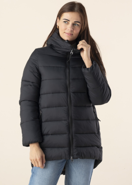 Lumberjack sieviešu ziemas jaka Zephyr ir lieliska izvēle aukstajiem mēnešiem. Tā ir vienkrāsaina un izceļas ar stepētu dizainu, kas nodrošina papildu siltumu un komfortu. Jakai ir piestiprināta kapuce, kas pasargās no vēja un sniega. Mugurpusei ir garāks piegriezums, kas piedāvā papildu aizsardzību un stilīgu izskatu. Modeles garums ir 176 cm un viņa valkā 40. izmēru.