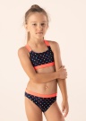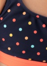 Бренд Name It любит яркие цвета и не боится их использовать. Эффектное, красочное бикини в горошек Zamara. Комфортный, эластичный материал. Бретели топа скрещиваются на спинке, обеспечивая хорошую посадку. Мягкий эластичный пояс на трусиках. Рост модели 117 см. Демонстрируемое изделия размер 110/116. Цвет: тёмно-синий/оранжевый/цветной/узорчатый