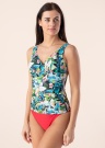 Топ Damella подходит для наслаждения летними днями. Женственный топ - узор в цветок и обтягивающий покрой. Удобства добавляют грудная часть на подкладке , также удобства добавляет эластичность материала. Рост модели - 176 см и носит размер 38.
