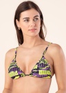 Пёстрый бюстгальтер бикини- эластичный и быстро сохнущий . Акцента добавляет узор бренда , также у товара снимаемая подушечка. Длина брителей регулируется. Товар носит знак текстиля Oeko-Tex Standard 100, который гарантирует, что товар был протестирован на наличие вредных веществ и он соответствует ограничениям. Рост модели - 176 см и носит размер S.