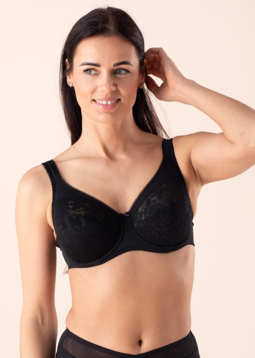 Красивый, женственный бюстгальтер в простом стиле с лёгким, удобным уплотнителем от бренда Lauma. Чашечки декорированы романтичным кружевом. Косточки обеспечивают поддержку. Регулируемые бретели обеспечивают оптимальную посадку. Трёхрядная застёжка на крючки расположена на спине. Рост модели 176 см. Демонстрируемое изделие размер 75B. Состав материала: нейлон/полиамид 70%, хлопок 15%, эластан 15%. Цвет: чёрный