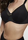 Бюстгальтер Triumph True Shape Sensation имеет фиксаторы и не имеет набивки, верхний край выполнен из полупрозрачной ткани. Удобная ширина плечевых лямок с мягкой подкладкой и регулируемой по длине, сзади есть застежка-крючок. Рост модели 177 см, размер - 75C. Материал: нейлон/полиамид 65%, эластан 26%, полиэстер 9%. Цвет: чёрный