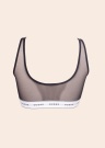 Бюстгалтер спортивного кроя с прелестной, женственной вставкой из тюля на передней части изделия и задней части изделия, выполненной полностью из тюля. Чашечки с лёгкой отделкой. Под грудью удобная эластичная лента с названием бренда. Состав материала: хлопок 95%, эластан 5%. Цвет: чёрный