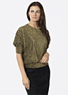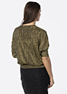 Блузка от Kairi Vilderson — это праздничная и эффектная вещь с полосатым узором и рукавами в стиле летучая мышь. Эластичный материал и интересный дизайн с прозрачным блеском делают её уникальной. Модель имеет рост 176 см и носит размер 38.