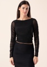 Праздничная блуза Noisy May подходит для вечерних встреч. Молодёжная и укороченная длина тела блуза- блестящая и длинные рукава. Выразительности добавляют прозрачная рукава и атрактивности добавляют эффектные детали. Рост модели - 176 см и носит размер S.