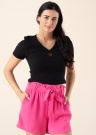 Молодёжная блуза Noisy May подходит для дней разного характера. Современная блуза- v-горловина и укороченная длина тела. Удобства добавляет эластичность материала выразительности добавляет интересный дизайн на горловине. Рост модели - 176 см и носит размер S.