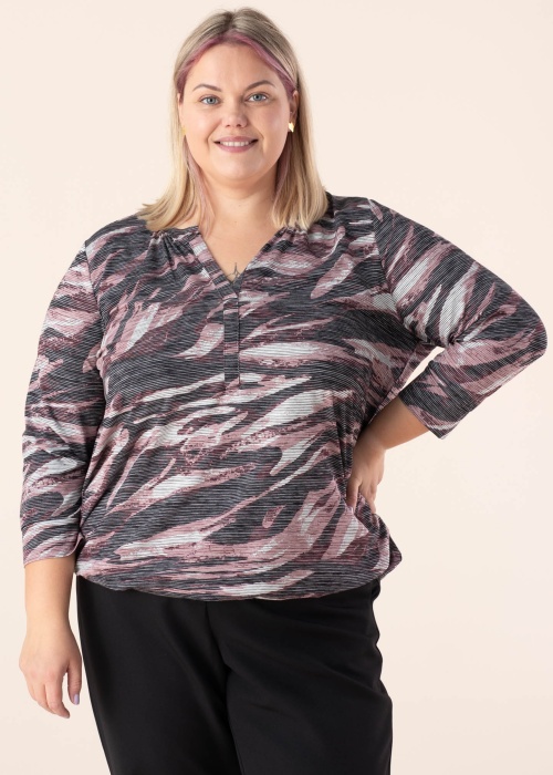Простая блуза Wasabiconcept подходит для повседневного ношения дома, на работе и отдыхе. Повседневная v-горловина блуза - пёстрая мягкая и эластичная. Игривый узор добавляет привлекательности , также снизу имеет резинка. Рост модели - 167 см и носит размер 46/48.