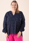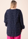 Симпатичная блуза Fransa Plus Size подходит для повседневного ношения. Узор в горошину блуза- v-горловина, свободно обвисающая и удобная на концах рукавов имеет резинка. Изготовлен из волокна LENZING ™ ECOVERO ™, полученного из сертифицированного, восстанавливаемого, древесного источника с использованием лучший для окружающей среды процесс производства и следуя всем стандартам окружающей среды. Рост модели - 167 см и носит размер 46.