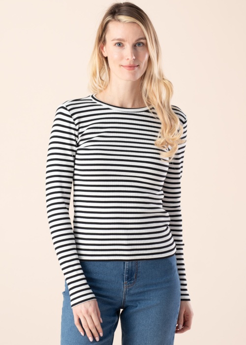 Полосатый узор блуза JDY заботится о том, чтобы ты мог чувствовать себя в школе весь день хорошо. С круглой горловиной c эластичная блуза- . Простой дизайн завораживает. Рост модели - 177 см и носит размер S.