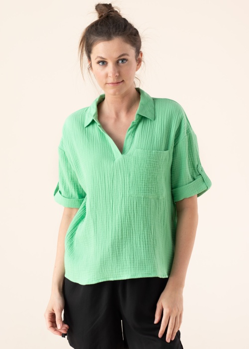 Хорошая блуза JDY заботится о том, чтобы мог чувствовать себя хорошо весь длинный день. Нестареющая и v-горловина блуза- укороченная длина тела и мягкая. На груди имеет открытый карман , на концах рукавов- интересный дизайн , также настроение создается шикарным декором поверхности. Рост модели - 177 см и носит размер S.