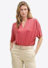 Женская блузка от Tom Tailor отличается своим красивым и минималистичным дизайном, который идеально подходит для любого случая. Она имеет короткие рукава и V-образный вырез, что придаёт ей элегантный и современный вид. Изготовленная из мягкой ткани, эта блузка обеспечивает комфорт и удобство в течение всего дня.