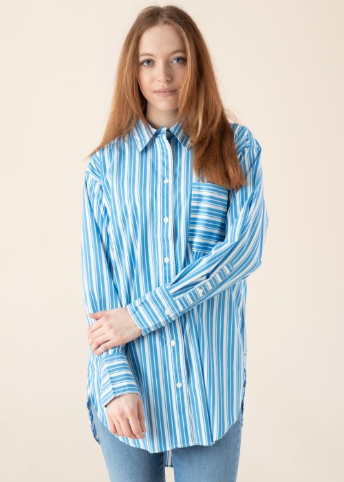 Стильная блуза Tom Tailor - хороший выбор для ценящего классику. Полосатый узор блуза- просторный дизайн и воротник с отворотом. Перед украшает застёжка на пуговицы , на груди открытый карман и на внешнем боку разрез. Сочетайте с Вашими любимыми джинсами, и Вы будете чувствовать себя уверенно. Рост модели - 174 см и носит размер S.