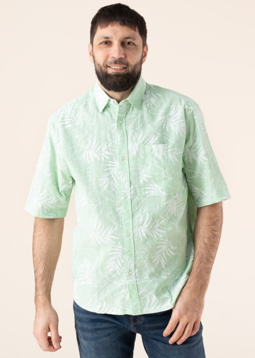 Летняя и привлекательная льняная блуза Tom Tailor - удобная и стильная. Воротник с отворотом блуза- рукава до логтя, лёгкая и дышащая. Спереди застёжка на пуговицы и на груди открытый карман. Игривый узор добавляет привлекательности. Рост модели - 188 см и носит размер L.