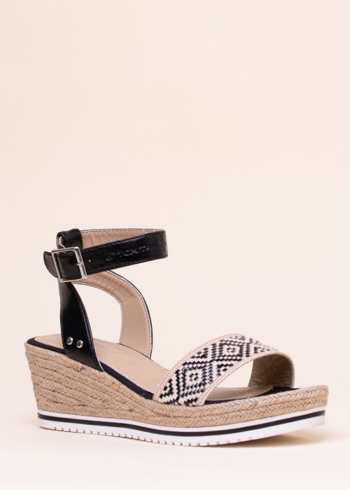 Оригинальная обувь от Tom Tailor создает изысканный образ. Верх представляет собой сочетание искусственной кожи и текстиля, ремешок на щиколотке добавляет женственности. Нос украшен эффектным узором. Стелька уплотнена, внешняя сторона танкетки украшена эффектным ремешком. Высота каблука 6,5 см.
