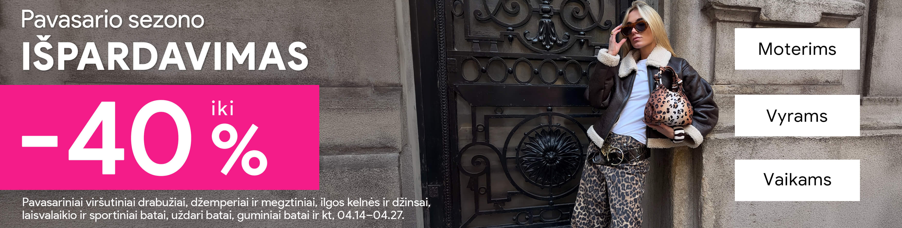 IŠPARDAVIMAS! Rudens striukės, džinsai, aulinukai, kasdieniai ir sportiniai batai, džemperiai su gobtuvais, megztiniai ir dar daugiau iki -70%! Ieškokite Moterims | Vyrams | Vaikams.