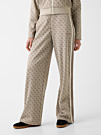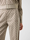 Женские брюки Guess 4G сшиты из лёгкой, приятной к телу и эластичной ткани, поэтому они хорошо сидят по фигуре и отлично подходят на каждый день. Модель выглядит современно: свободные широкие штанины, пояс на резинке, удобные открытые боковые карманы и аккуратная фирменная вставка под левым карманом. Снаружи заметен узнаваемый брендовый узор — он подчёркивает стиль и делает эти брюки выразительной частью гардероба.